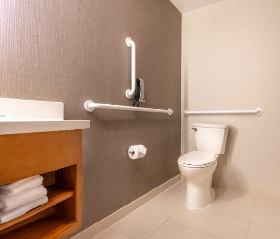 Dazu gehören u. a. höher gesetzte oder gut erreichbare Waschtische, großzügig angelegte WC-Bereiche, komfortable Sitzmöglichkeiten in der Dusche sowie rutschhemmende Oberflächen. Auch Haltegriffe und weitere ergonomische Elemente können bereits bei der Planung berücksichtigt oder später unkompliziert nachgerüstet werden.